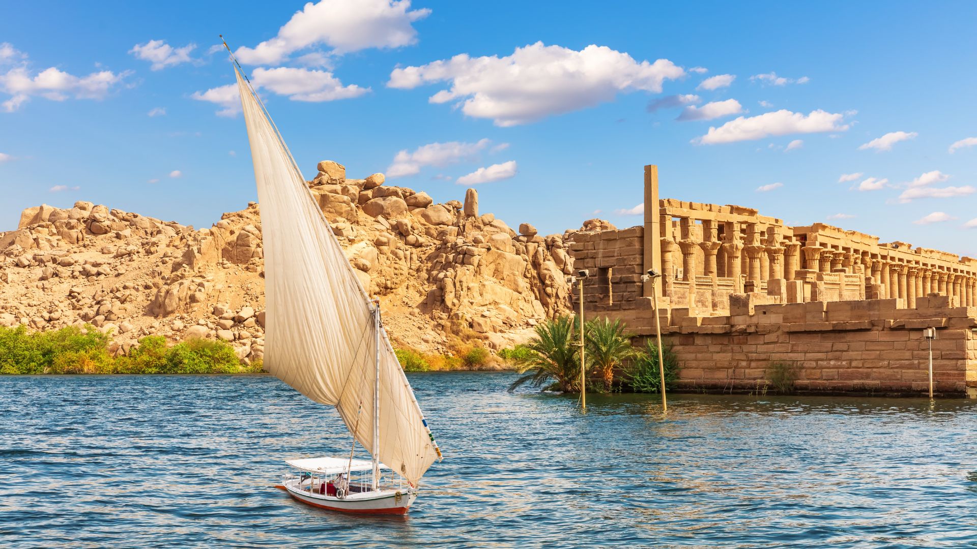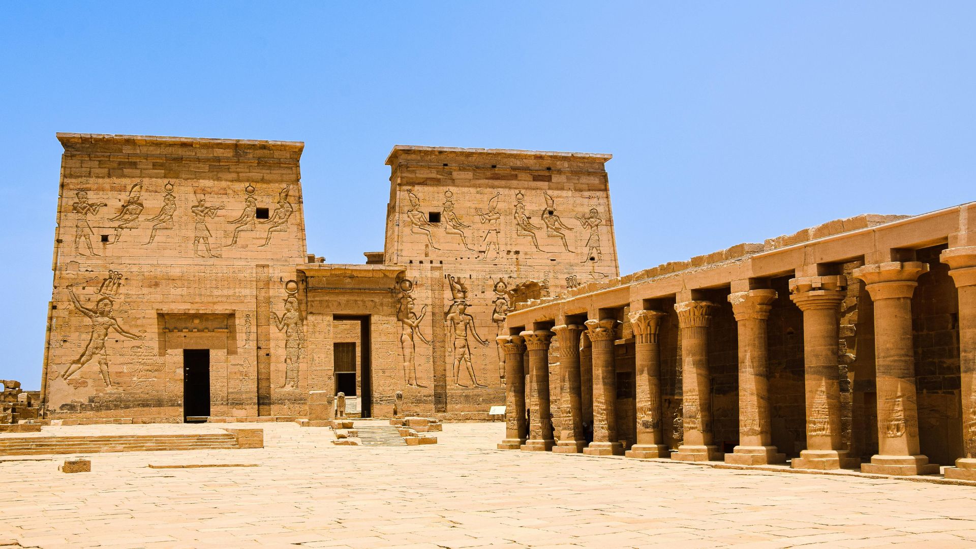 O Templo de Philae é amplamente considerado o "Pérola do Egito". Localizado em uma ilha idílica no Rio Nilo, perto de Aswan, ele oferece uma das experiências mais românticas e visualmente deslumbrantes do país, já que o acesso é feito exclusivamente por pequenos barcos a motor, proporcionando uma vista panorâmica das colunas de pedra emergindo do azul profundo do rio.