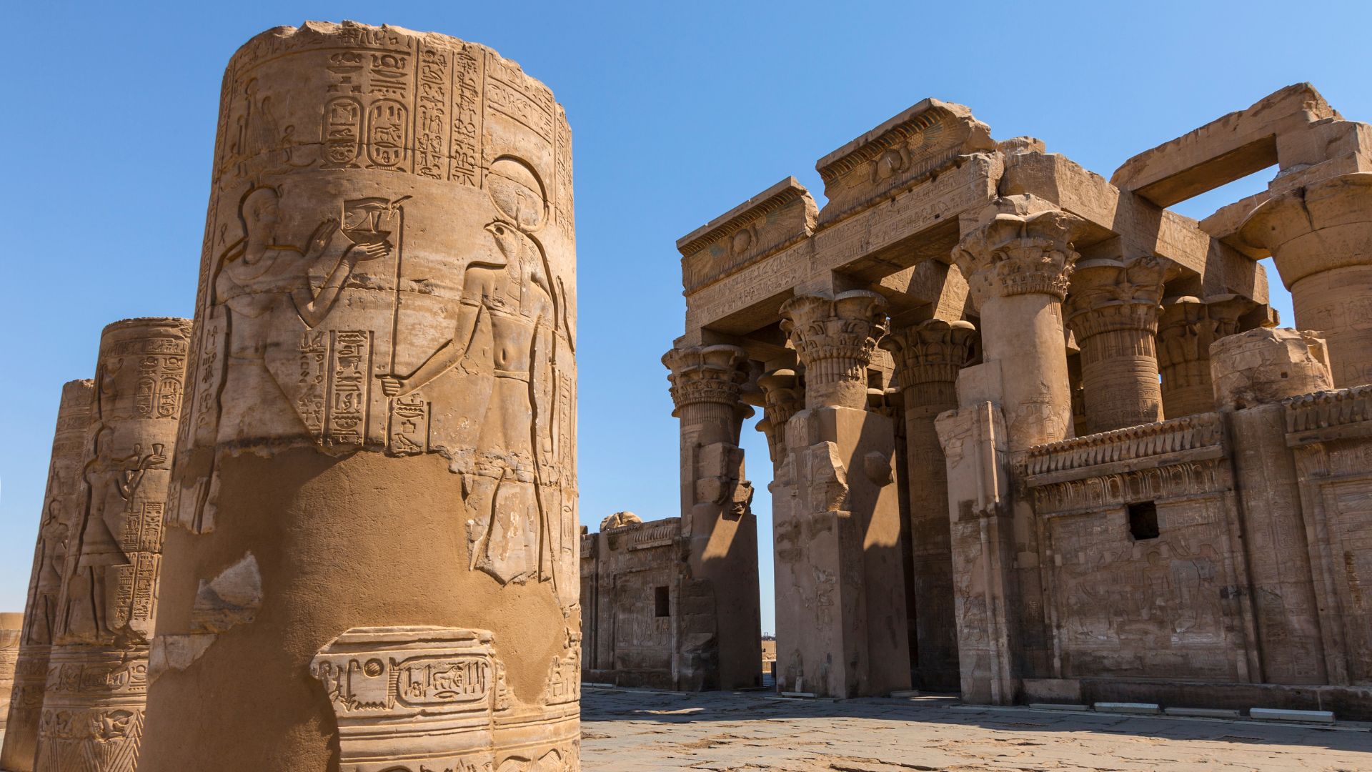 O lado esquerdo do templo é dedicado a Hórus, o Velho (Haroeris), o deus falcão, símbolo da ordem e da luz. Já o lado direito é dedicado a Sobek, o deus crocodilo, associado à fertilidade e à força bruta do Nilo. Para os antigos egípcios, Sobek era uma divindade ambivalente: ele era o senhor das águas que trazia a inundação necessária para a agricultura, mas também representava o perigo real dos animais que habitavam o rio. Construir um templo em sua honra era uma forma de apaziguar os crocodilos e garantir a segurança daqueles que navegavam e viviam às margens do Nilo.