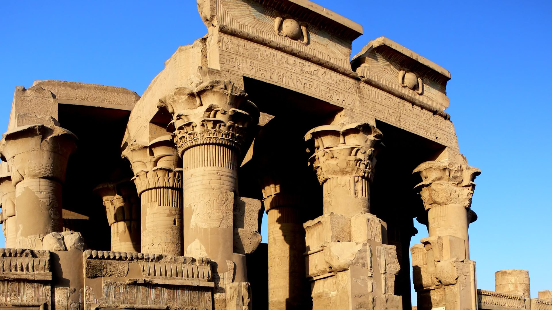 O Templo de Kom Ombo é uma das estruturas mais intrigantes de todo o Egito devido à sua natureza dual. Localizado em uma curva acentuada do Rio Nilo, onde antigamente os crocodilos costumavam se aglomerar nas margens, este templo possui um design único no mundo: ele é totalmente simétrico e duplo. Tudo nele — as entradas, as salas hipóstilas, os santuários e as passagens — é duplicado para honrar duas divindades distintas que compartilham o mesmo espaço.