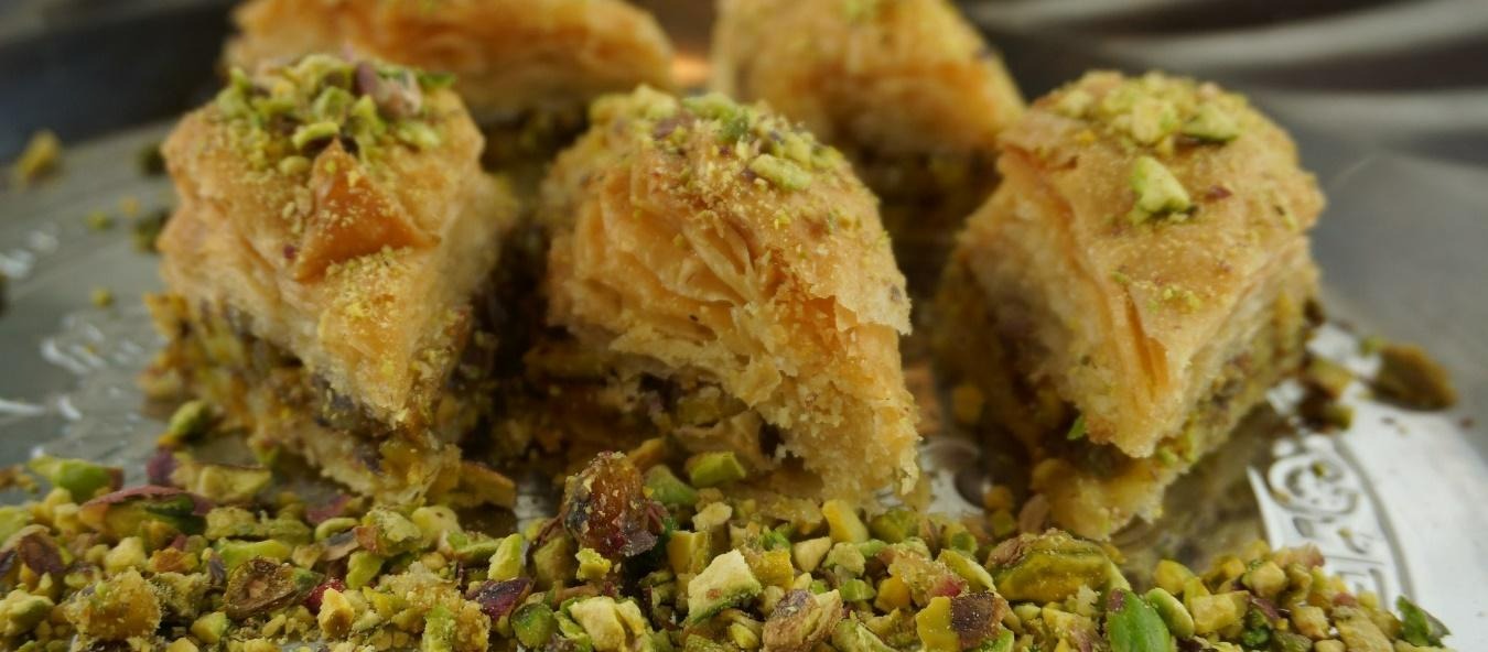 • baklava: massa recheada de nozes aromatizada com água mel ou com uma infusão de flor de limão;