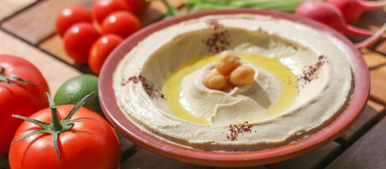 • hummus bi tahina: grão-de-bico em purê com pasta de sésamo;