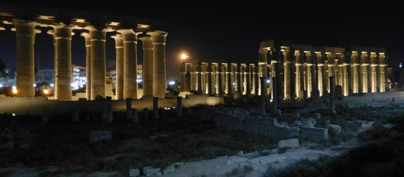 O Templo de Luxor fica no meio da cidade, cercado de hotéis, prédios residenciais e comerciais. Foi construído pelo faraó Amenophis III no local de um outro templo de Tebas e ampliado por Tutankamon, Ramses II, Nectanebo, Alexandre o Grande e vários romanos.