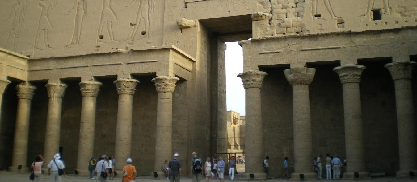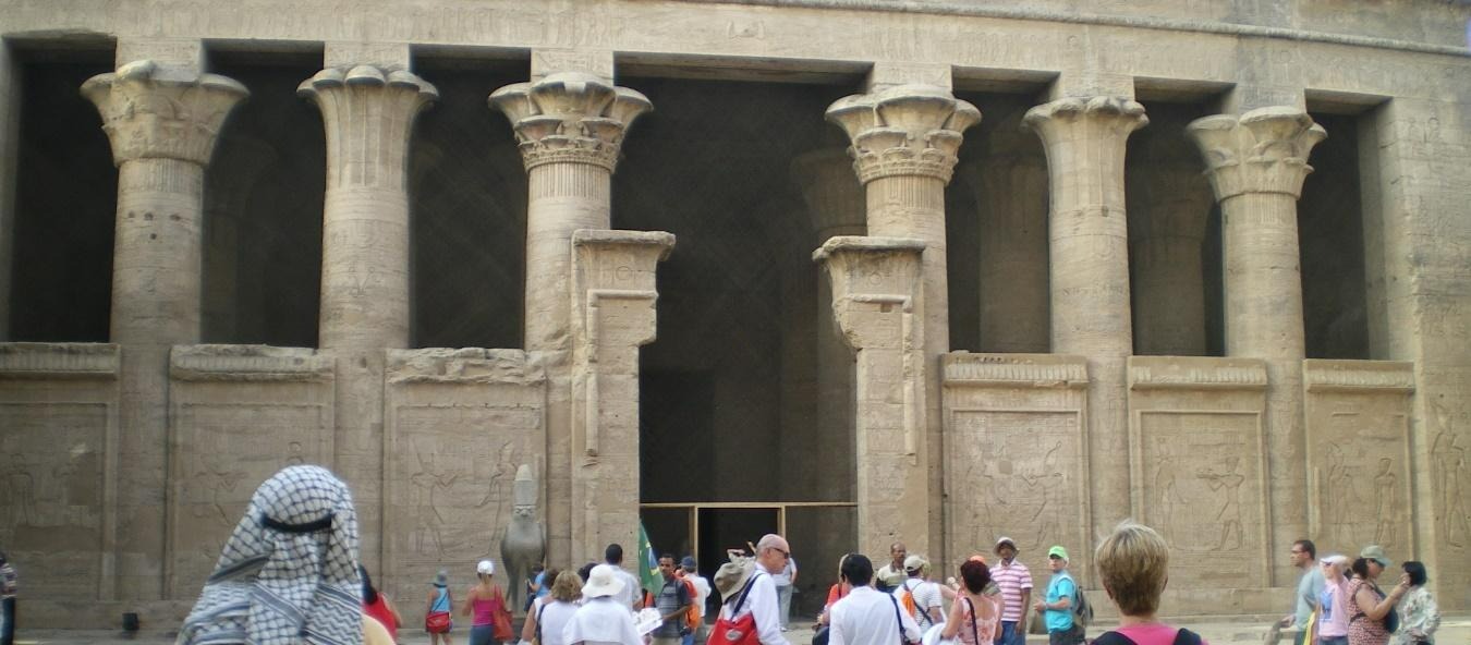 Antiga capital do Alto Egito é famosa pelo mais completo é bem conservado templo, datado da época greco-romana e dedicado ao Deus Horus - Deus do Sol com cabeça de falcão. Única testemunha completa da época Ptolomáica, é notável pelas pinturas e baixos-relevos que revelam bem a vida egípcia desse tempo.