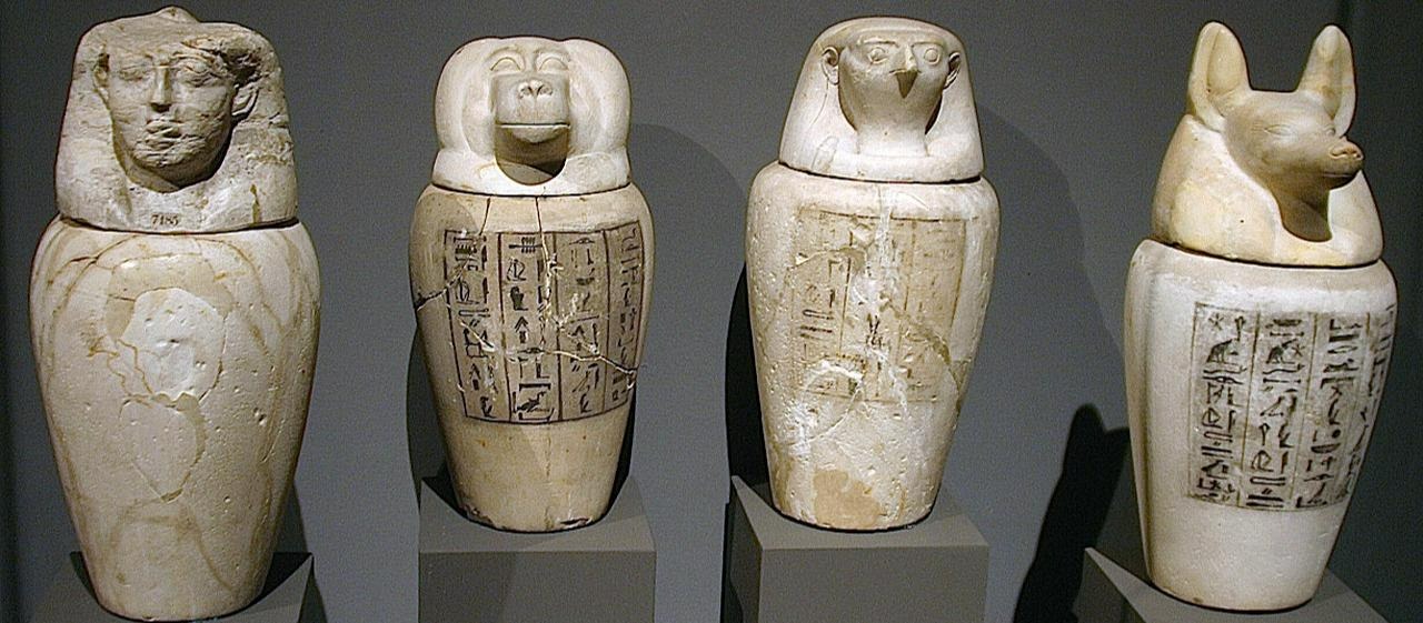 As técnicas de mumificação foram sendo gradualmente aperfeiçoadas com o uso de natrão cristalino (mistura de sulfato, cloreto, bicarbonato e carbonato de sódio). Todos os tecidos moles, como o cérebro e os órgãos internos, eram removidos, após as cavidades eram lavadas e enchidas com natrão, que também cobria o resto do corpo. Os intestinos, pulmões, fígado e estômago eram preservados separadamente e armazenados em vasos protegidos pelos quatro filhos de Horus: Duamutef (estômago), Qebhsenuef (intestinos), Hapy (pulmões) e Imsety (fígado). Tanto era o poder destes vasos que mesmo quando os órgãos passaram a regressar ao corpo após a preservação (21ª dinastia), eles continuaram a ser fornecidos.